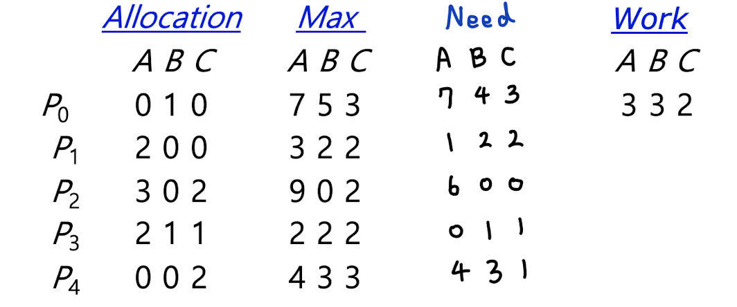참고!! 문제의 Work 배열은 Available 배열에 해당함.
