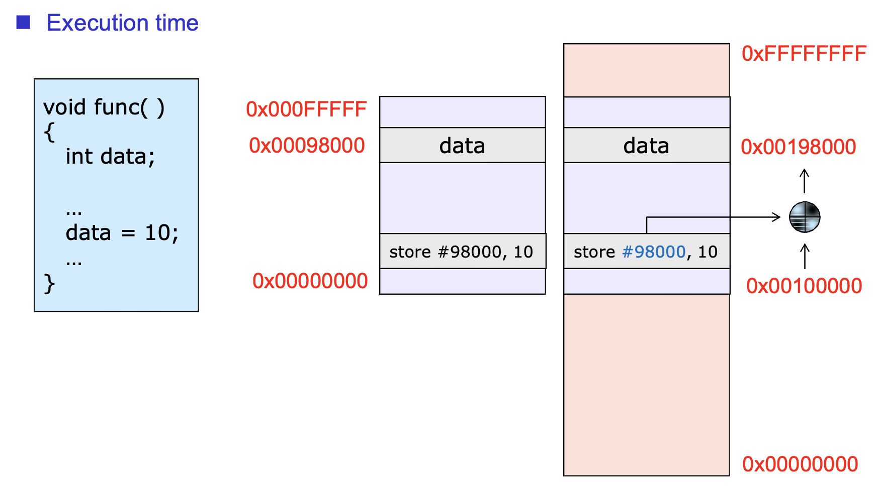store $98000 10 // $98000은 data의 논리적 주소
