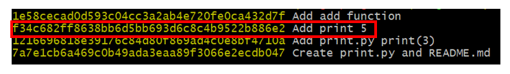 mixed 옵션을 예로 들어 보겠습니다. 프로젝트를 진행하다가 마음에 안 들어서 reset --mixed를 통해 이전 버전으로 돌아간 경우를 생각해봅시다. 그러면 지금까지 add 했던 것들은 다 날아가 버립니다. staging area가 이전 커밋처럼 바뀌기 때문이죠. repository도 마찬가지겠네요. 만약 깃허브에 push를 한다면 방금까지 작업했던 작업물이 아닌 이전 버전의 작업물이 push될 것입니다. 다행이도 working directory는 변함이 없습니다. 즉 방금까지 작업했던 코드 파일 자체는 그대로 보존되어 있습니다. 이를 응용하면 마음에 안 드는 특정 커밋을 취소할 수 있습니다. 아래 그림에서 'Add print 5' 커밋을 지우려면 어떻게 해야할까요?