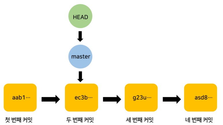 checkout은 해드의 이동입니다. 해드만 이동시킬 수 있다면 아래 그림처럼 해드가 직접적으로 커밋을 가리키게 하는 것도 가능하겠죠?