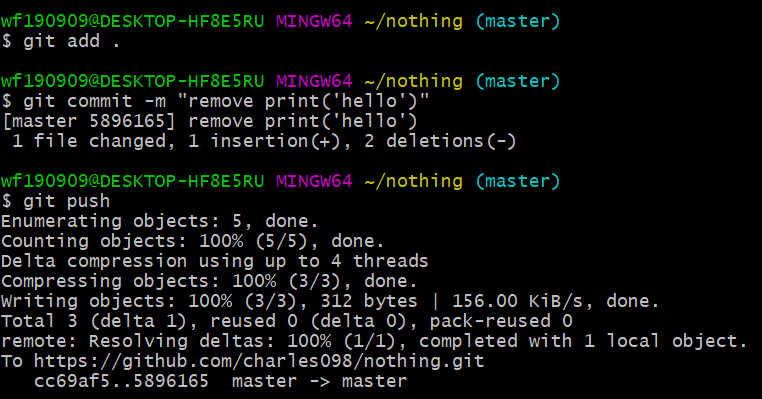 print('hello')가 잘 지워진 것을 확인할 수 있습니다.