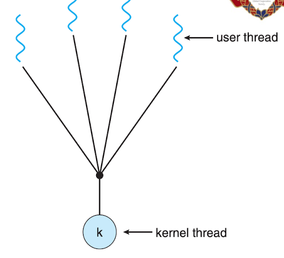 사용자 라이브러리로 구현된 쓰레드다. 커널이 관여하지 않기 때문에 커널 관점에서는 하나의 쓰레드지만, 프로그램 레벨에서는 다른 쓰레드다. 그림으로 나타내면 아래와 같다.